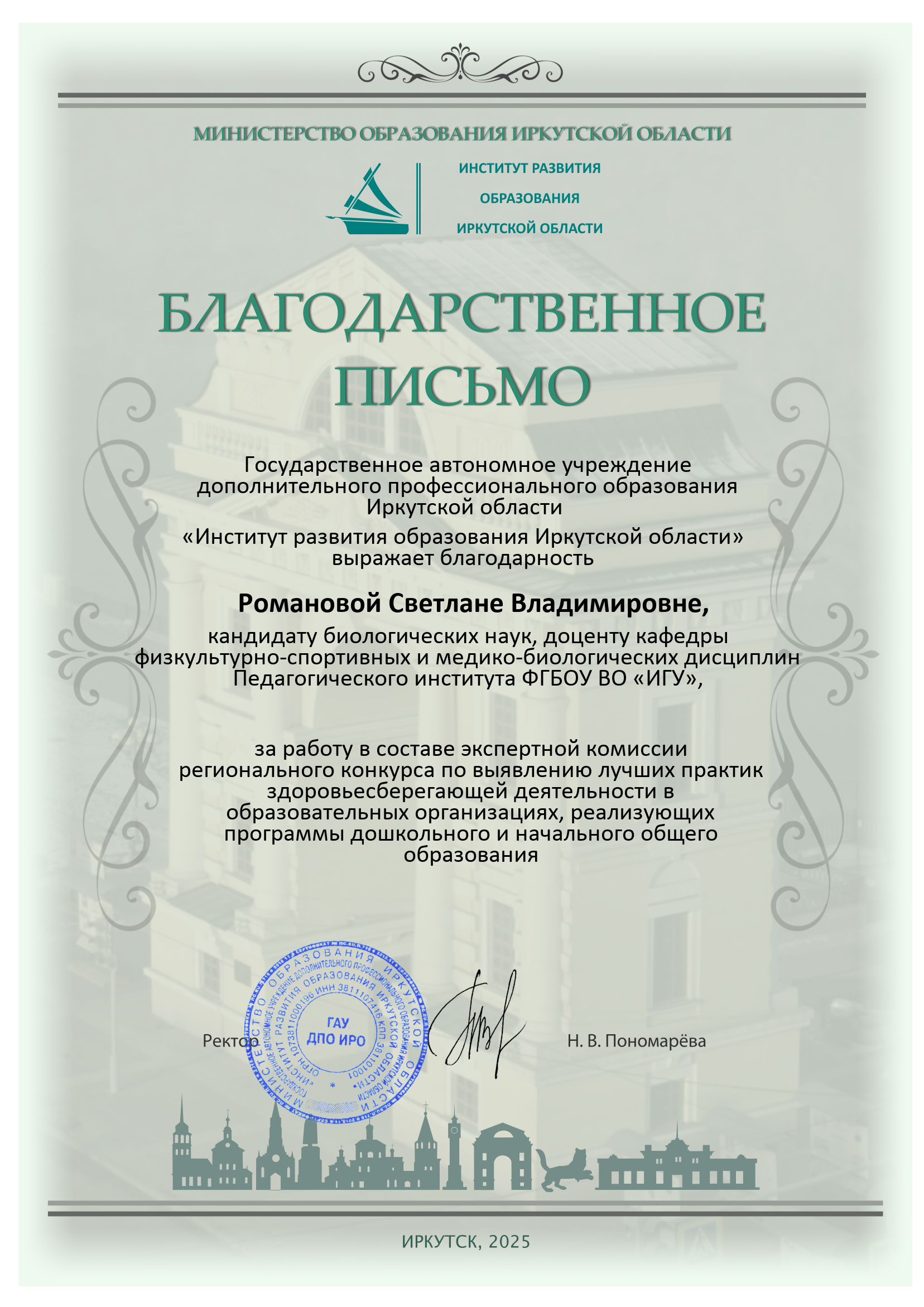 - Благодарственное письмо ректора ИГУ Плотниковой И.И.
