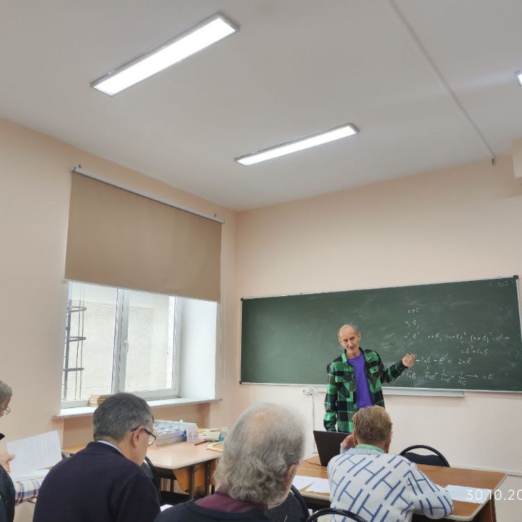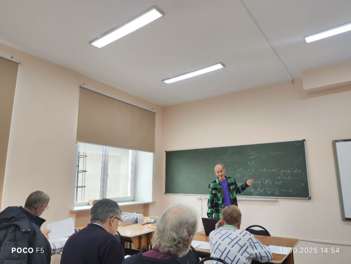 На фото: Председатель жюри конкурса «Субстанция» Н.Н. Штыков проводит разбор задач для членов жюри. Обсуждаются критерии проверки