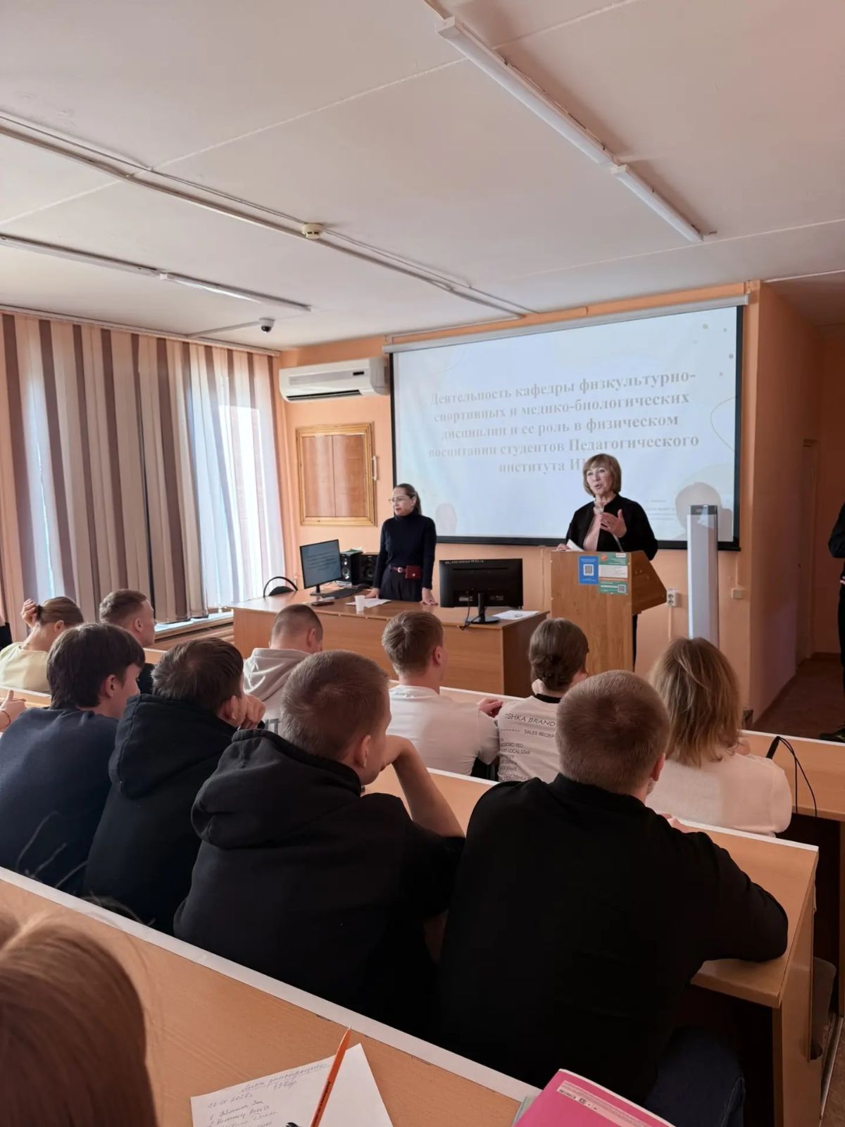 Выпускникам была представлена информация об условиях поступления на профиль «Физическая культура» на базе среднего профессионального образования. Светлана Владимировна рассказала о спортивной жизни в вузе, в частности, об отборе в сборные команды Педагогического института по различным видам спорта, о ведущих спортсменах региона и страны, обучающихся на данном профиле. Также выпускники узнали о деятельности кафедры физкультурно-спортивных и медико-биологических дисциплин, о сроках подачи документов и вступительных экзаменах.