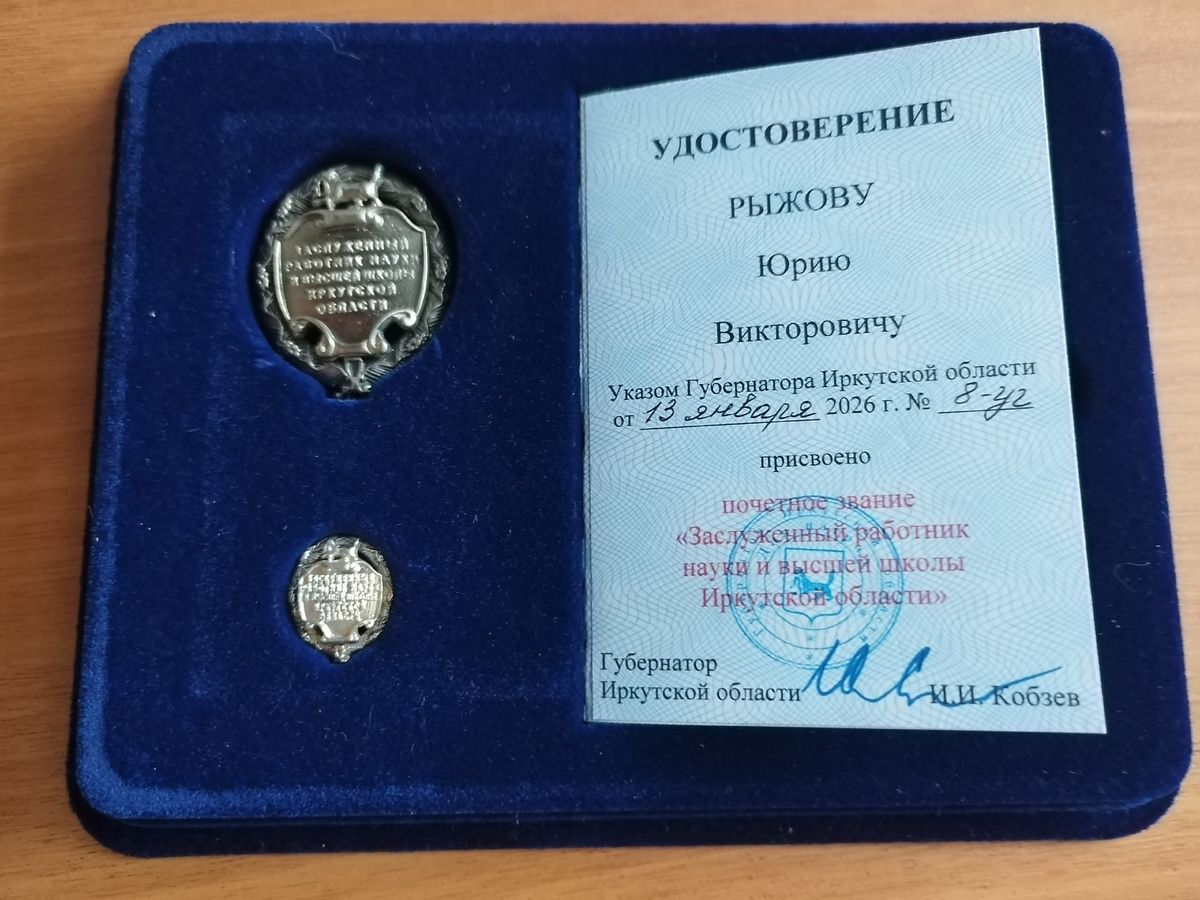 Профессор кафедры географии, безопасности жизнедеятельности и методики, заведующий лабораторией геологии мезозоя и кайнозоя Института земной коры СО РАН Юрий Рыжов получил почетное звание «Заслуженный работник науки и высшей школы Иркутской области».