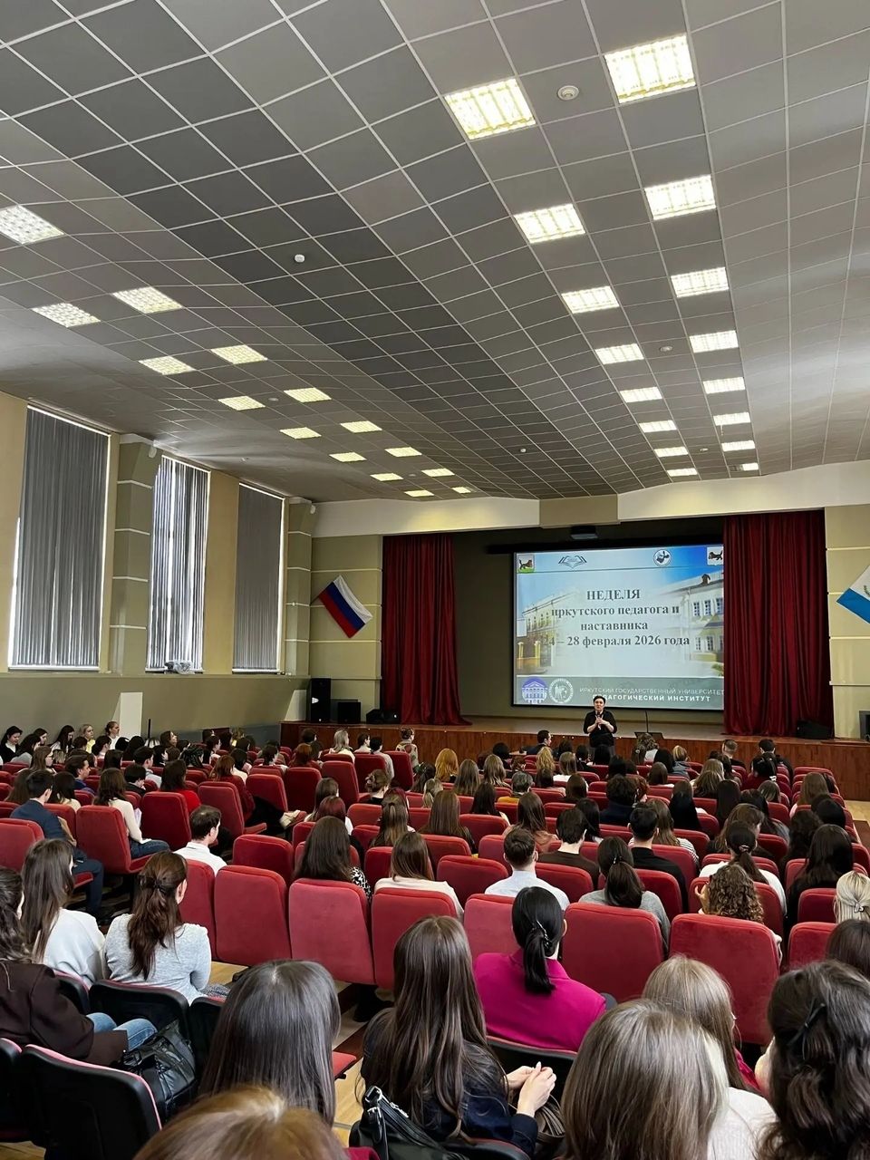 24 февраля в рамках реализации проекта «Неделя иркутского педагога и наставника» в Педагогическом институте ИГУ состоялась встреча студентов старших курсов с представителями министерства образования Иркутской области, ИРО Иркутской области «Ресурсы и возможности региональной системы образования: организационно-методические условия реализации программы «Земский учитель – 2026» в Иркутской области».