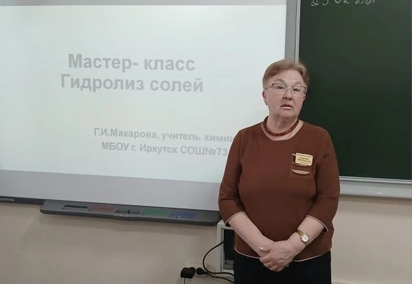 В среду, 25 февраля, была организована встреча студентов 4 курса с учителями-химиками. Председатель МО учителей, учитель химии МБОУ г. Иркутска СОШ № 73 Галина Ильинична Макарова провела мастер-класс по теме «Гидролиз солей». Занятие педагога было нацелено на рассмотрение сложных вопросов теории электролитической диссоциации (ТЭД) и направлено на формирование понимания обратимых реакций, взаимодействия ионов с водой, определения pH среды и использование таблицы растворимости.