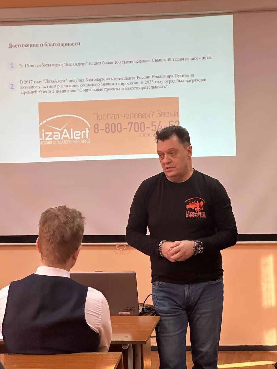 Являясь старшим поисковой группы «Лизы Алерт» (ПОИСКОВЫЙ ОТРЯД https://vk.com/lizaalert_real), Артур Владимирович рассказал студентам об истории создания и направлениях деятельности отряда, о своем опыте поиска людей. По отзывам студентов, которые впервые оказались на таком занятии, они «слушали, затаив дыхание» и «мурашки бегали по коже». И несколько студентов выразили желание вступить в поисковый отряд!