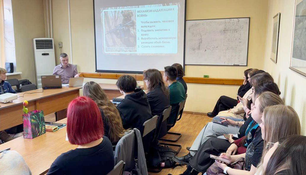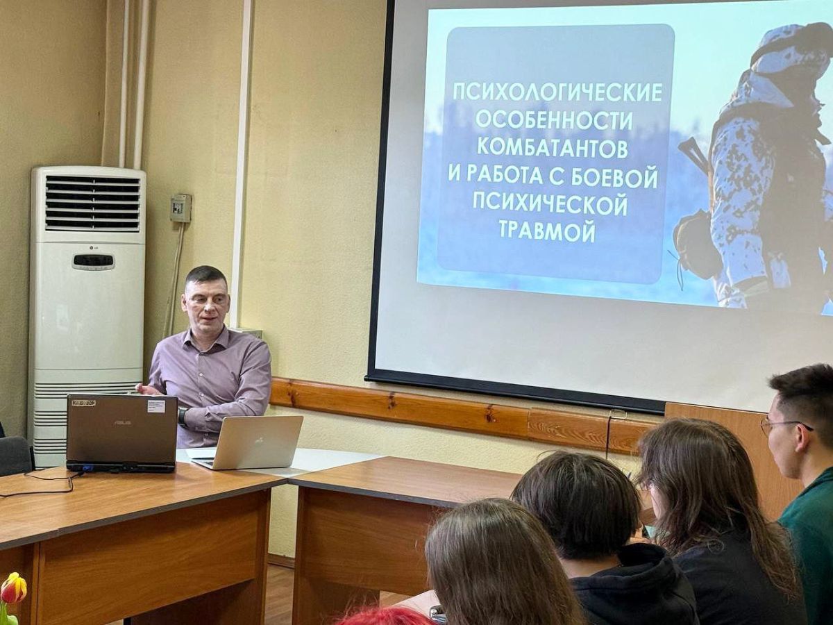 10 марта 2026 года аспирант кафедры психологии образования и развития личности и клинический психолог Кузьмин Иван Вадимович провел лекцию для студентов-психологов 2 и 4 курсов на тему "Психологические особенности комбатантов и работа с боевой психической травмой".