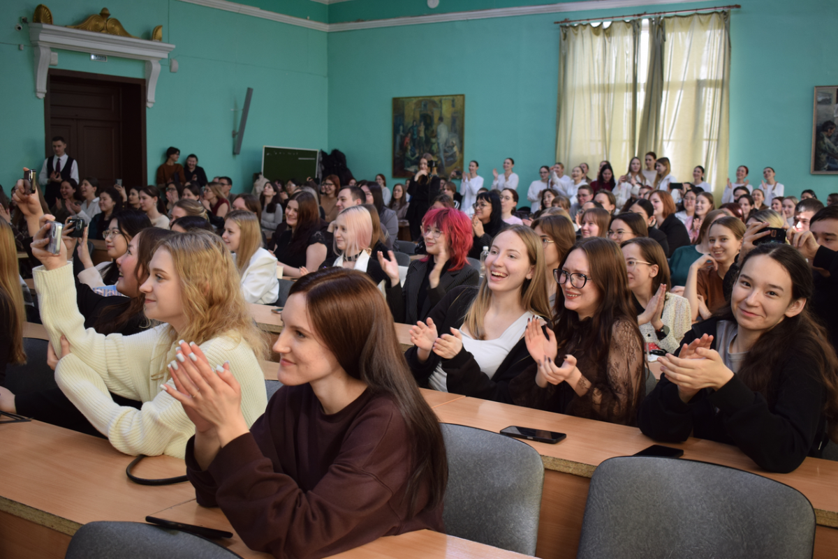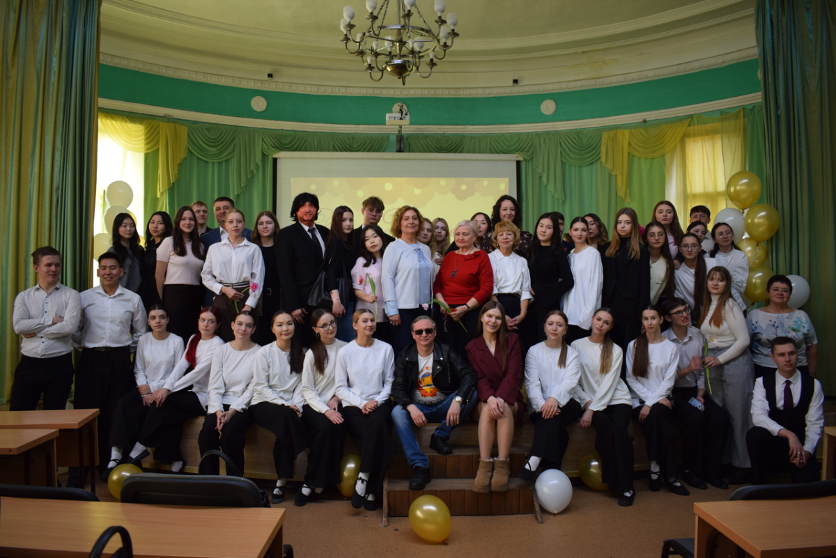 Концерт начался с яркого дефиле-поздравления от студентов-юношей ОГЭО. Ребята подготовили эффектное выступление, в котором объединили танец, музыку и праздничное настроение. Особенным моментом стало то, что в завершение номера они подарили всем женщинам в зале тюльпаны — символ весны, красоты и внимания. Этот жест вызвал бурные аплодисменты и стал одним из самых трогательных моментов концерта.