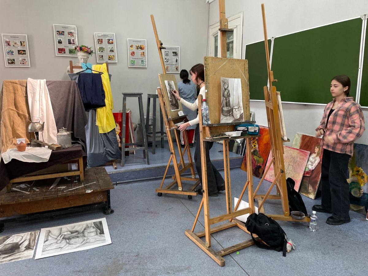 26 марта на кафедре изобразительного искусства и методики прошёл открытый урок по дисциплине «Рисунок» под руководством старшего преподавателя Писарева Артёма Сергеевича. Вместе со студентами 1-го курса ученицы ДШИ №4 города Иркутска, обучающиеся у преподавателя Степановой Светланы Николаевны, выполнили учебное задание «Постановка из предметов быта мягкими материалами (соус, уголь)». В результате ученицы познакомились с новой для себя графической техникой, примерили на себя роль студентов кафедры и прогулялись по исторической части корпуса на Сухэ-Батора, 9.