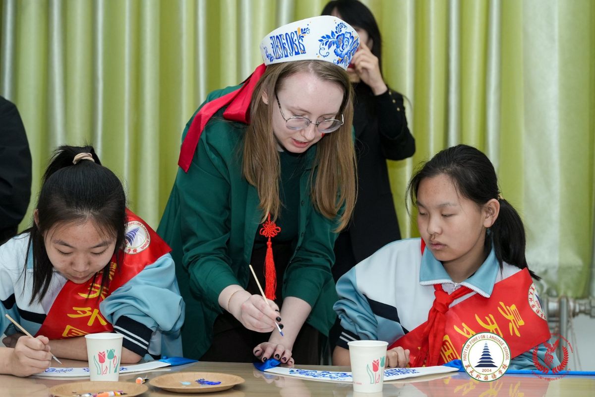 30 марта 2026 г. Ирина провела мастер-класс для учеников Школы Иностранных языков района Фаньшань г. Пекина. Под её руководством дети расписывали кокошники в смешении техники русской росписи «Гжель» и традиционной техники китайской росписи «Цинхуа», сочетающих изящество рисунка и глубокий синий цвет на белом фоне.