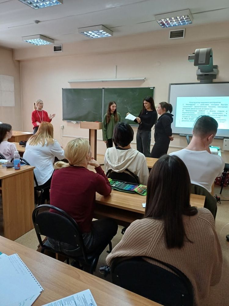 Кафедра социальной педагогики и психологии продолжает проведение открытых занятий в рамках Месячника открытых уроков в Педагогическом институте ИГУ. 3 апреля студенткой 4 курса Анастасией Роговой под руководством доцента кафедры А.В. Кибальник была проведена методическая мастерская «Преодоление деструктивного эскапизма: практики здорового восприятия» для студентов 2 курса профиля «Психология и социальная педагогика». Гостями мероприятия стали более 30 студентов 3-4 курсов ГБПОУ ИО «Иркутский региональный колледж педагогического образования» (ИРКПО), обучающихся по специальности «Педагогика дополнительного образования».