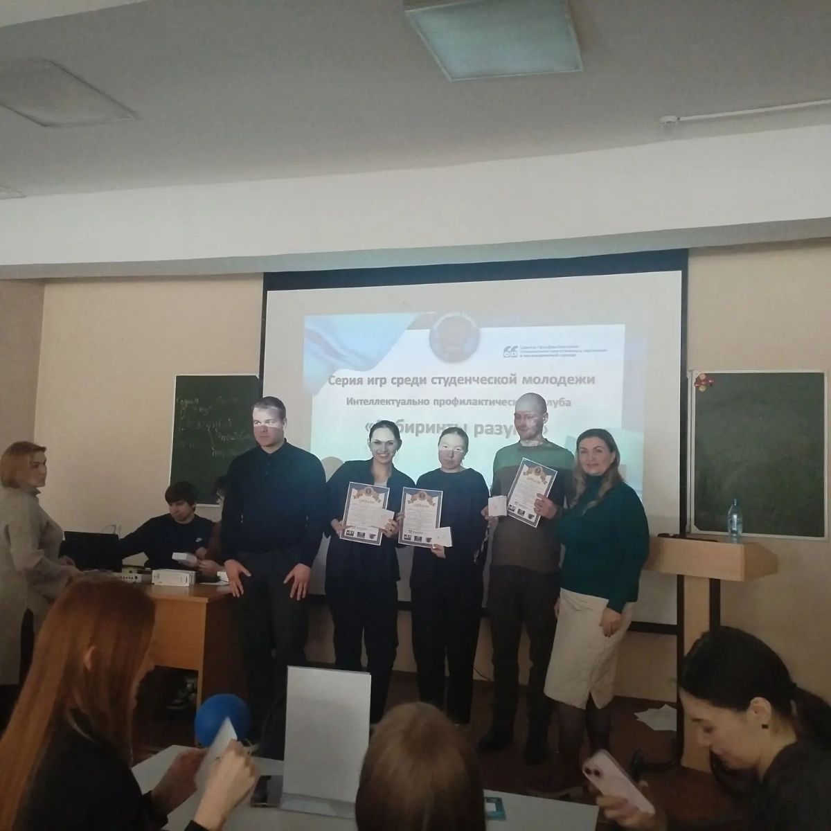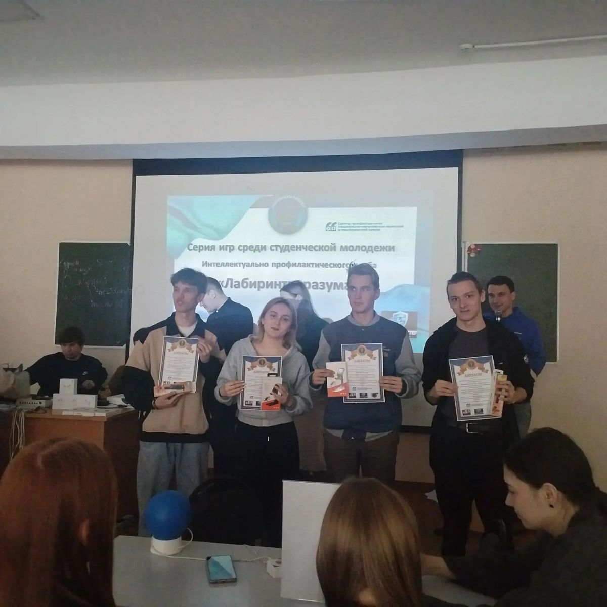 23 апреля 2026 года студенты Педагогического института приняли участие в игре брейн-ринг "Лабиринты разума" организованной ОГКУ «Центр профилактики социально-негативных явлений в молодежной среде». Командам предстояло пройти 3 раунда и ответить на вопросы, которые затрагивали важные темы различных видов зависимостей. В игре важно было не только показать знания, но и узнать новую информацию по проблематике. Студенты продемонстрировали широкий кругозор знаний от литературных произведений и биологии до тонких юридических нюансов.